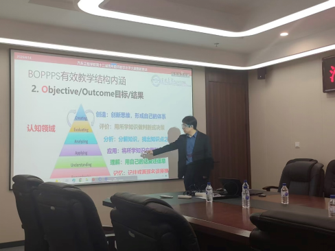 王军年教授以“BOPPPS有效教学结构设计”为题,结合工科专业理论课程的特点,细致讲解了如何将BOPPPS教学结构无缝融入每堂课的教学设计。这一讲解帮助青年教师构建起目标清晰、建构科学、高效有序、操作性强的课堂教学环节设计,提升教与学的水平。
