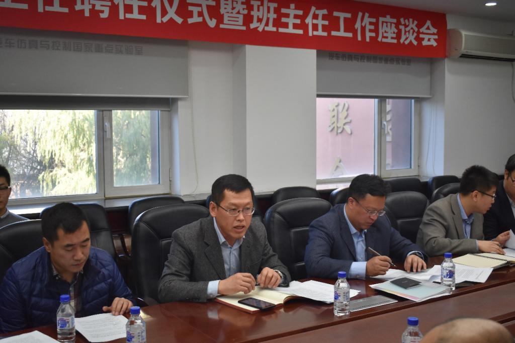 盛磊副书记首先宣读了2019级班主任聘任名单,高镇海院长为新聘班主任颁发了聘书。汽车工程系副主任、博士生导师王军年教授代表新聘班主任发言。他回顾了以往班主任工作的经历与收获,对自己再次担任班主任充满信心,表示坚决按照学校及学院有关工作要求,做有理想信念、有道德情操、有扎实学识、有仁爱之心、真正贴近学生的合格班主任。李善兴书记在讲话时从班主任工作在“三全育人”工作中的重要性、班主任要成为学生的成长发展的导师、班集体均衡发展三个方面做了工作部署,并强调教师应将教书育人作为首要任务,为国家培养合格的建设者和接班人。