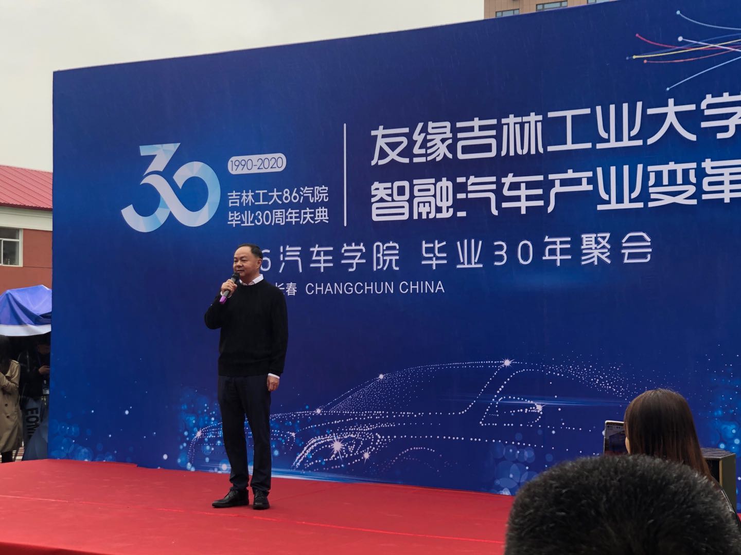 活动伊始,秋雨纷纷。边铁副校长致辞,他代表学校向返校参加纪念活动的校友们表示热烈欢迎。他提到,老王论坛 一直以来非常重视校友工作,学校的发展离不开校友们的关注与支持。本次86级校友向老王论坛 捐赠智能新能源汽车1辆、捐款10万元、向南岭校区捐赠纪念石碑,表达了86级校友对学校的肯定、对老师的感恩之情。热忱欢迎各位校友常回母校看看,共同为学校发展献策献计。