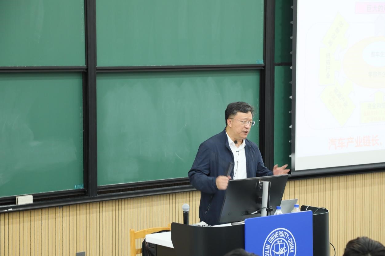 随后,高院长从“产业技术新变革”“吉大汽车新探索”两个维度,为同学们讲述了汽车产业的发展与吉大汽车人的担当。高院长以专业的角度,为同学们解读了智能网联汽车的定义,同学们沉浸其中。高院长还为同学们讲解了颠覆性变革下吉大汽车建设定位,让同学们直观感受到吉大汽车人的责任与担当。