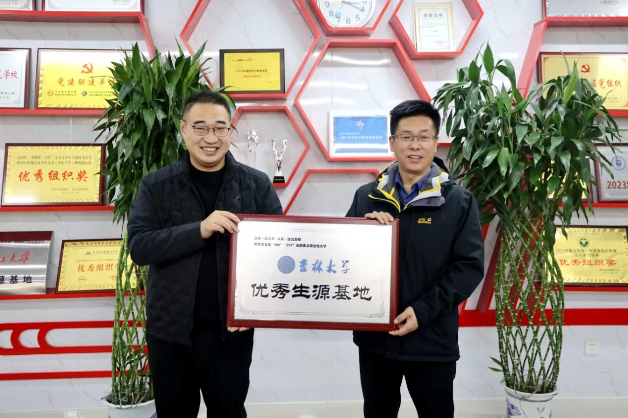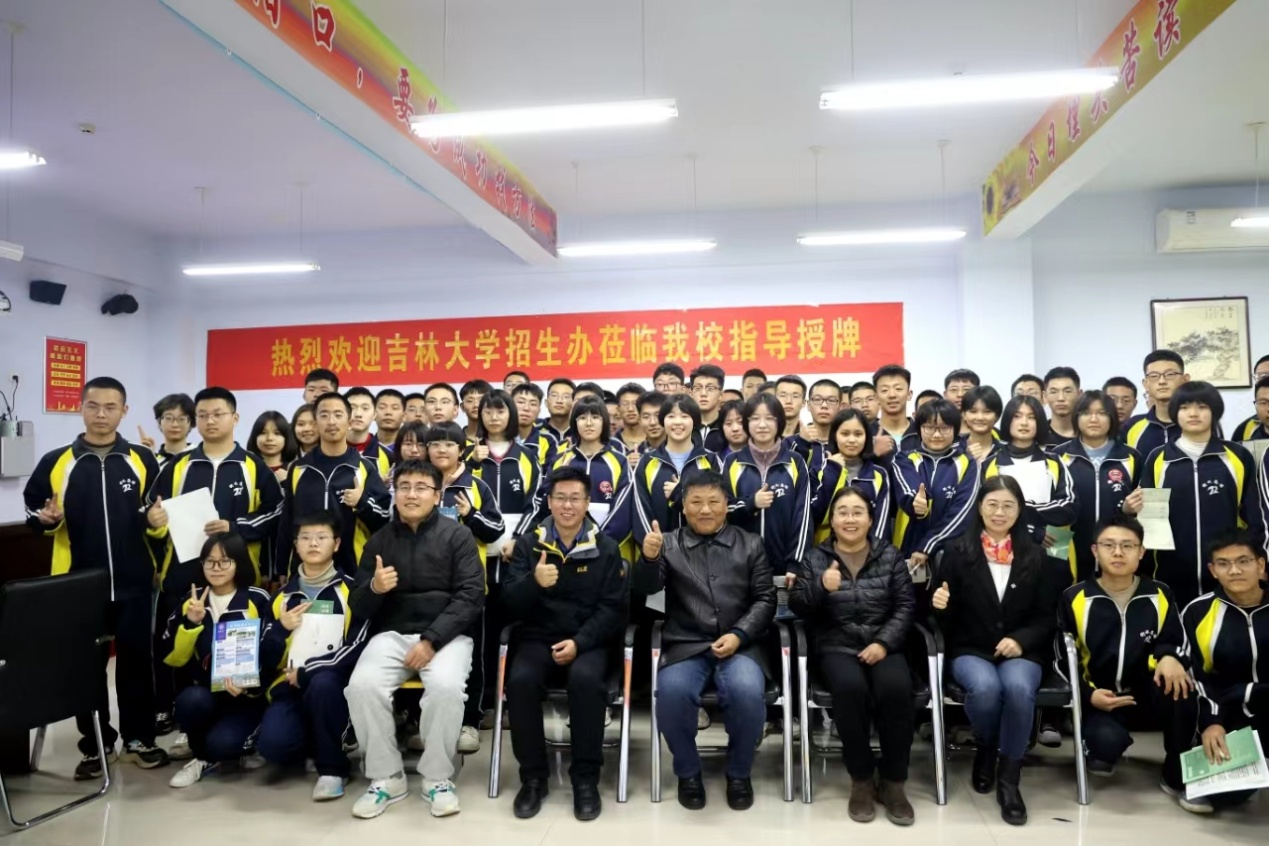 杨昌海老师代表老王论坛 向两所高中授予了优秀生源基地牌匾。双方就进一步加强合作进行了深入探讨并达成了共识。宣讲中我们注重融入当地文化因素,用孩子们喜闻乐见的语言和事例,图文并茂、生动活泼的讲述吉大故事。特别是在清河志臻中学,我们邀请了中国农大负责河北招生的两位校友—李老师和迟老师一同前往。同室依次演讲,共同答疑解惑。在志臻中学搞了个吉大校友会。充分展现了吉大的办学实力,破除了河北考生和家长在东北上学就得在东北就业的误解和困惑。