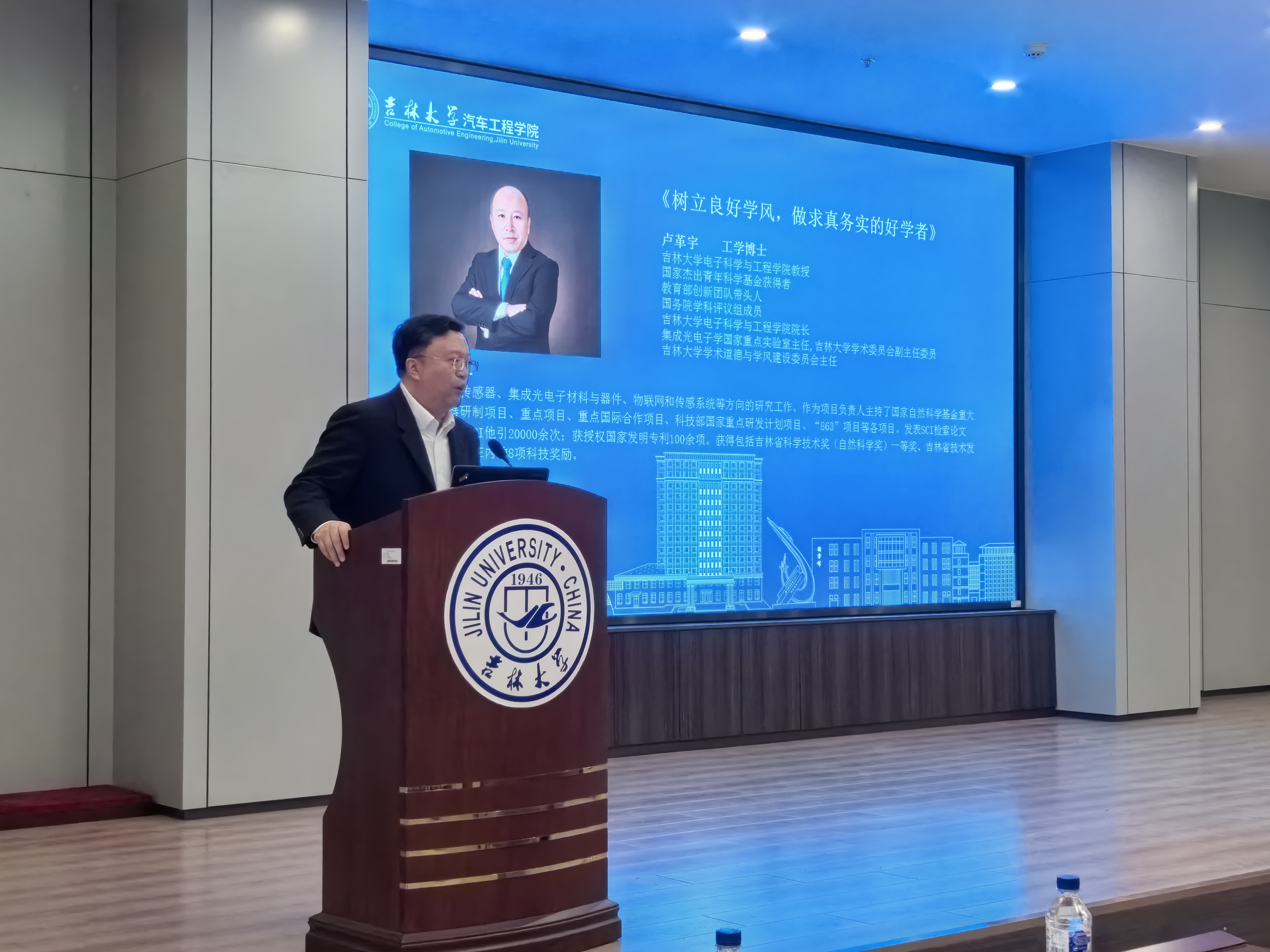 卢革宇教授以《树立良好学风,做求真务实的好学者》为题,分别从学术道德和学风建设的目的和重要性,学术不端的定义和范围,制度规范和责任体系建设,学术不端的问题原因及对策办法等方面进行详细讲解,并简要介绍了电子学院的主要历史沿革与发展。卢革宇教授突出强调学术诚信是科研工作者的生命,人人都要讲学术诚信。