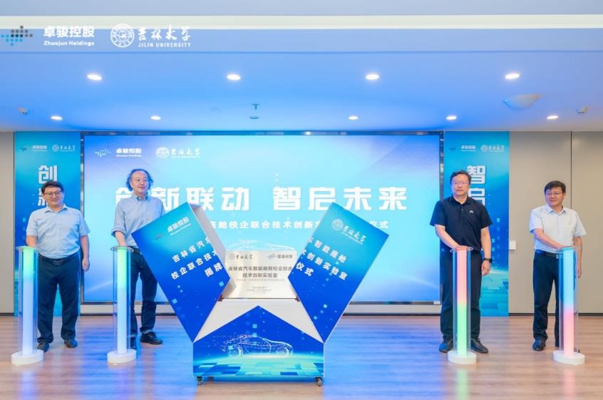 学院院长高镇海、党委书记黄忠华与卓骏控股总裁刘息宇、副总裁牛未冬共同为“吉林省汽车智能座舱校企联合技术创新实验室”揭牌。