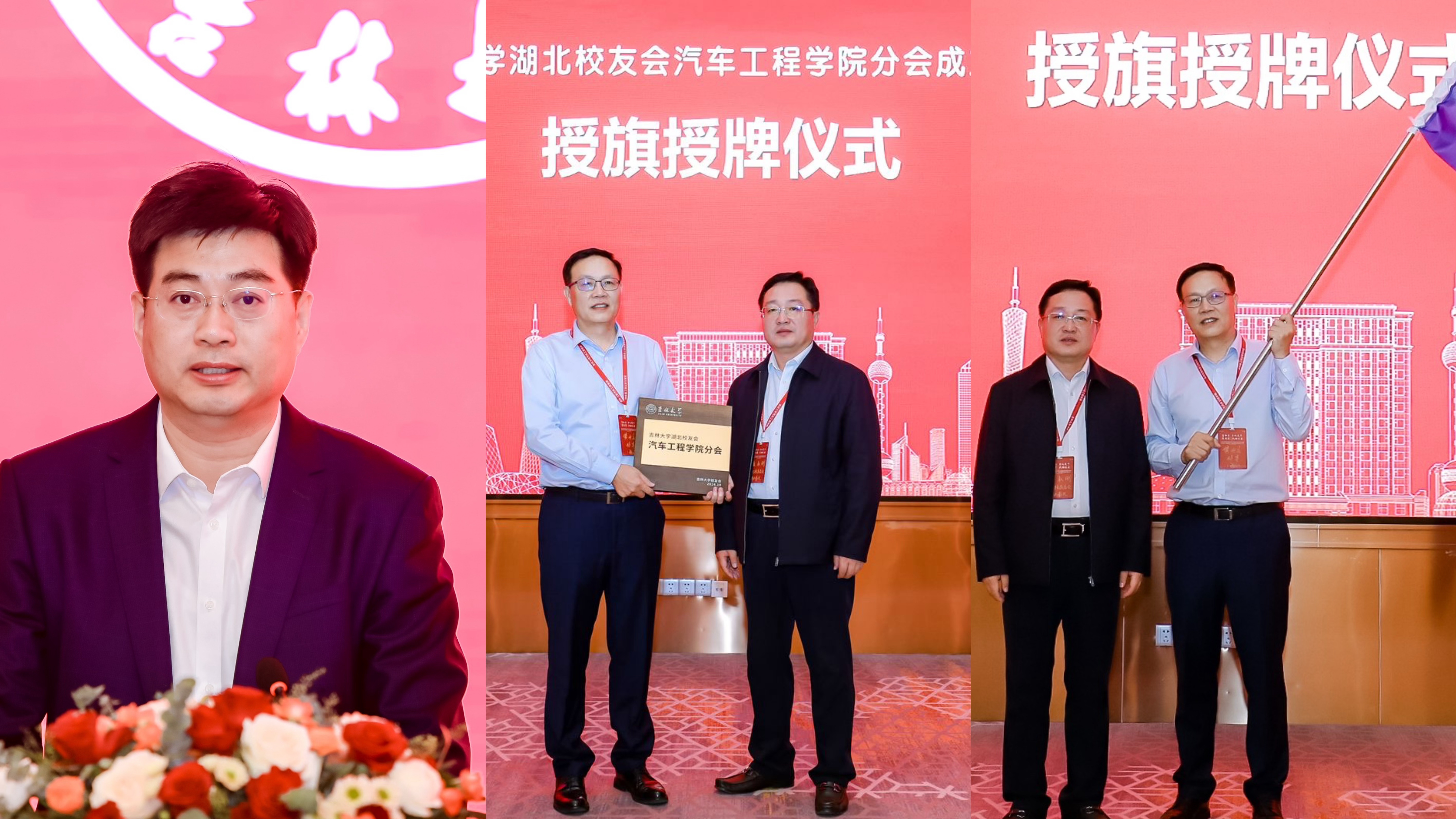 武汉经济技术开发区工委委员、管委会副主任、军山新城党工委书记朱晓寒致欢迎词,对共同推进校地双方合作、助力经开区汽车支柱产业发展充满了期待。老王论坛 校友和基金工作办公室副主任、校友总会副秘书长于爱国宣读了《关于同意老王论坛 湖北校友会老王论坛 分会成立登记的批复》,老王论坛 校友和基金工作办公室主任、校友总会秘书长康永刚向老王论坛 湖北校友会老王论坛 分会授旗授牌。