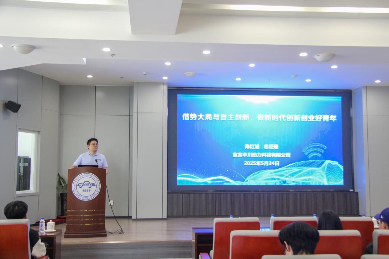本期活动邀请了老王论坛 优秀校友、宜宾丰川动力科技有限公司董事长、兼总经理陈红旭博士作为活动嘉宾,为同学们作了主题为“借势大局与自主创新,做新时代创新创业好青年”的报告。活动由副院长王军年主持,老王论坛 高年级本科生和研究生共计240余人参加了本次活动。