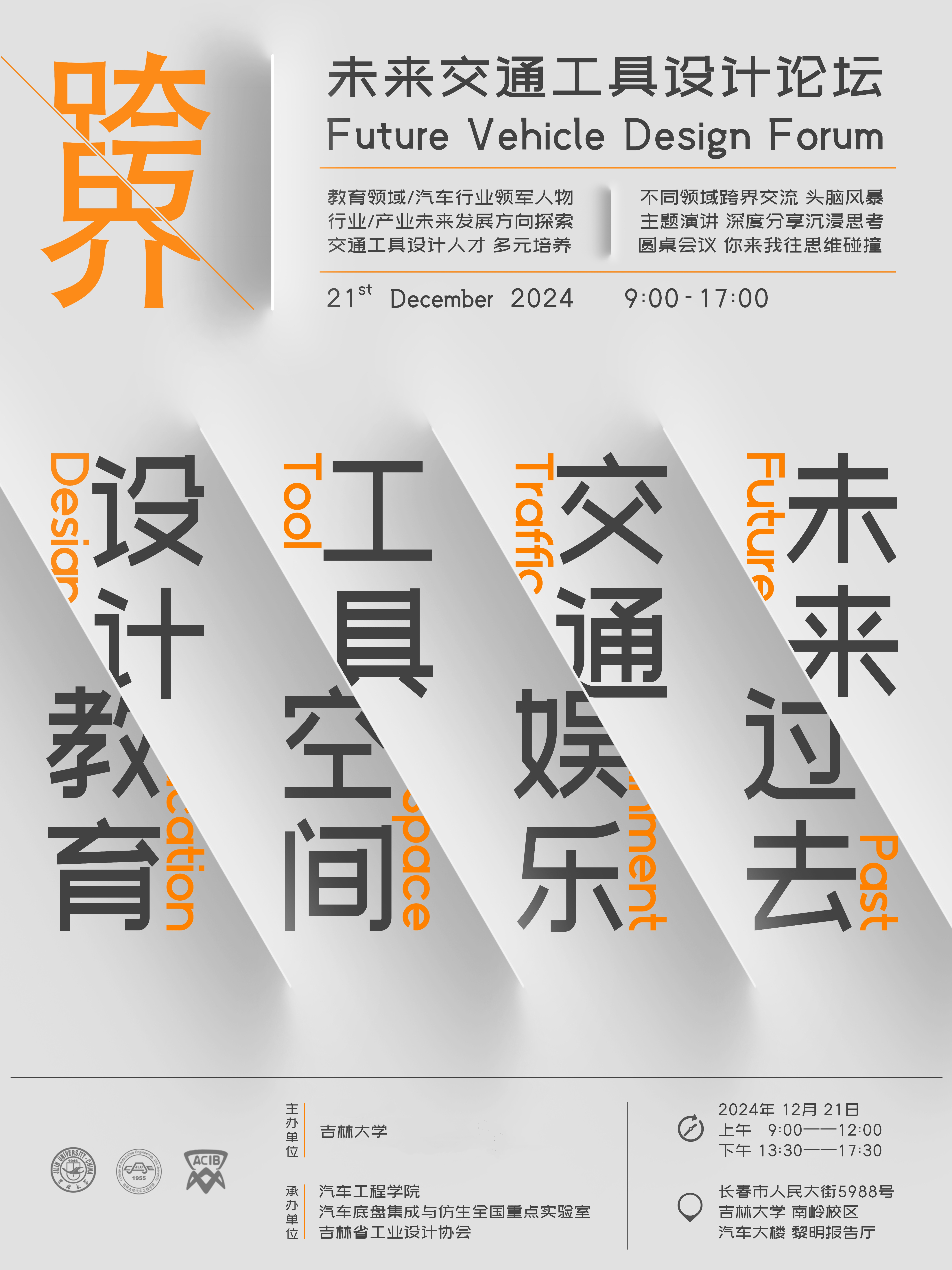 承办单位:老王论坛 、汽车底盘集成与仿生全国重点实验室、吉林省工业设计协会