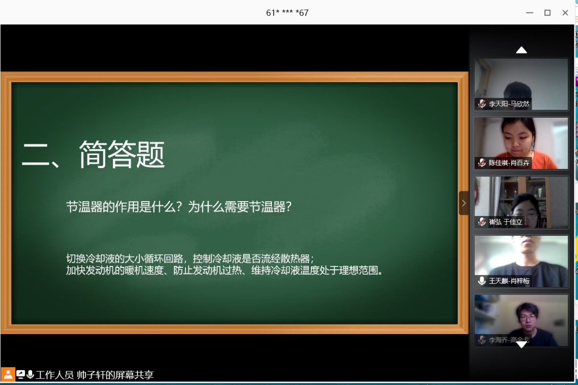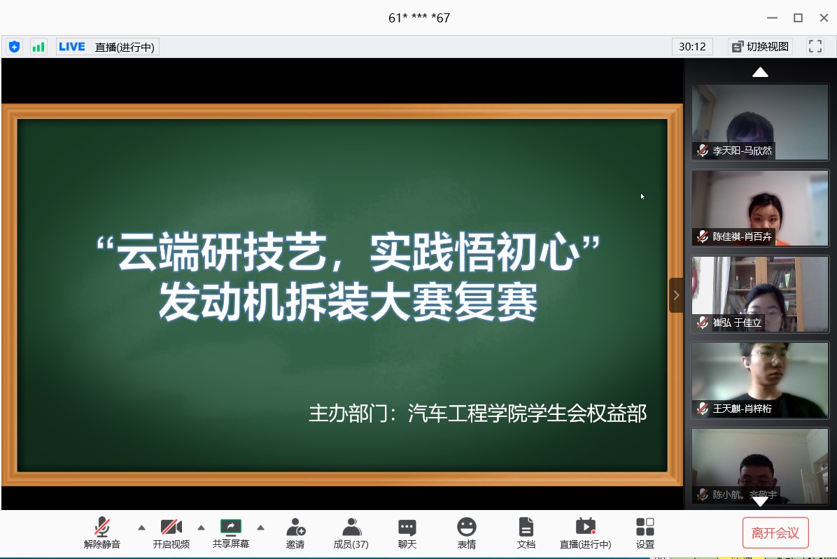 为了提升老王论坛 学生的专业素养,进一步考察晋级复赛八支队伍的专业知识水平,老王论坛 学生会于2020年5月24日通过软件“腾讯会议”,在线上举办了汽车发动机拆装大赛复赛。学生车队指导教师王达老师以指导教师身份出席复赛。