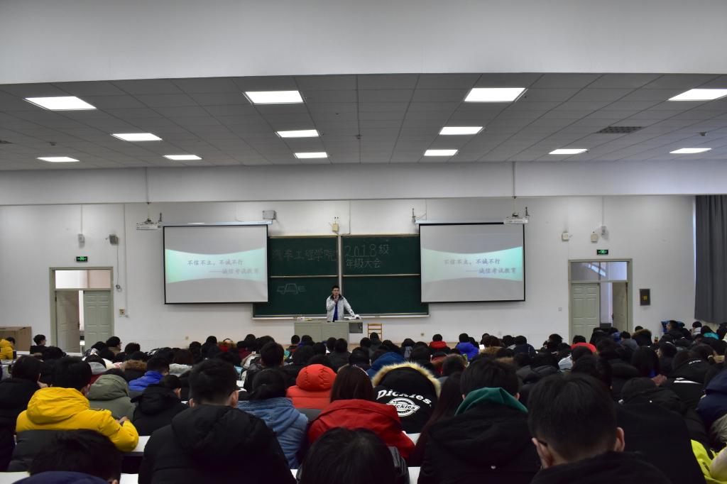 为严肃考风考纪,杜绝在期末考试中出现作弊抄袭现象,老王论坛 于2019年12月20日中午12时20分在逸夫教育大楼B211教室召开2018级年级大会。2018级辅导员李季老师主持了此次大会。