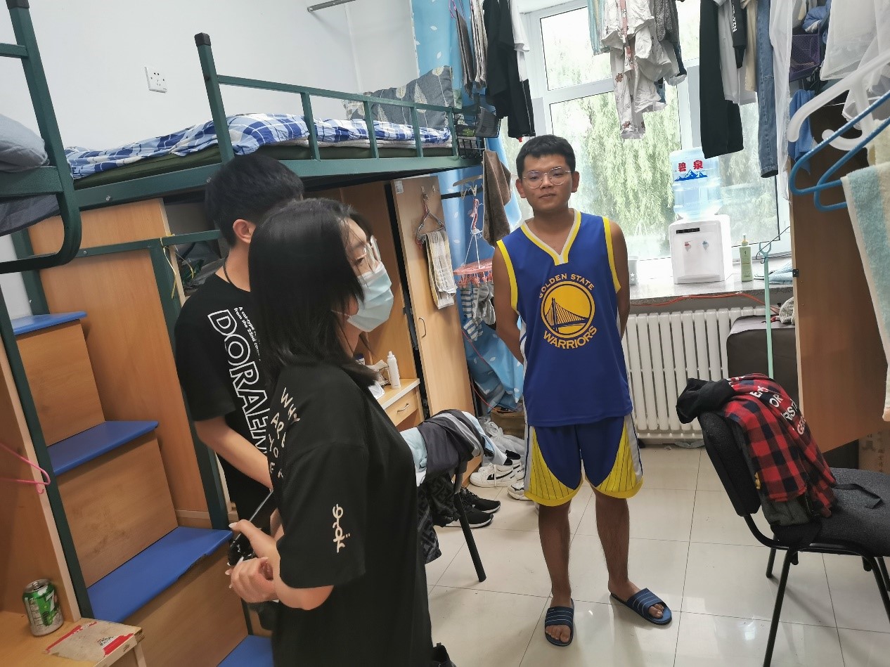 在寝室检查过程中,李老师与同学们细致交流,详细了解了学生疫情期间居家生活和学习情况以及期末考试的复习情况,并与同学们探讨了疫情居家学习的利弊。此次李老师重点检查了寝室是否使用违章电器,并且强调了疫情期间应重视寝室卫生,希望同学们勤通风勤打扫。李老师呼吁同学们遵循学校疫情防控安排,坚持做到 “一日三测温,一点名”。