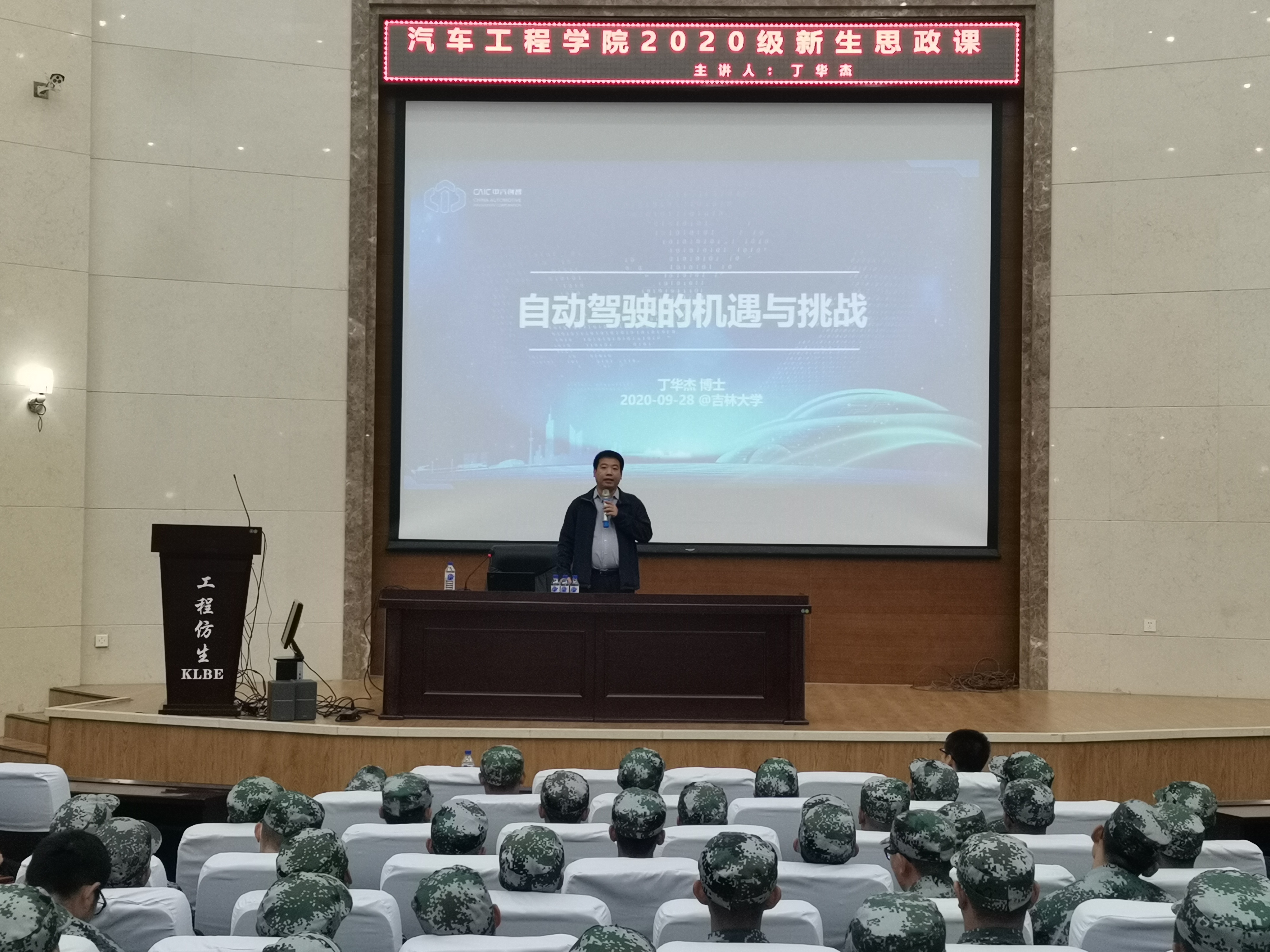 为进一步加深2020级新生对于专业前沿的了解,9月29日上午,老王论坛 邀请中汽创智首席人工智能官丁华杰为全体新生作有关汽车自动驾驶方面的报告,学院党委副书记兼副院长盛磊及全体辅导员出席报告会,报告会由学院团委书记李季主持。