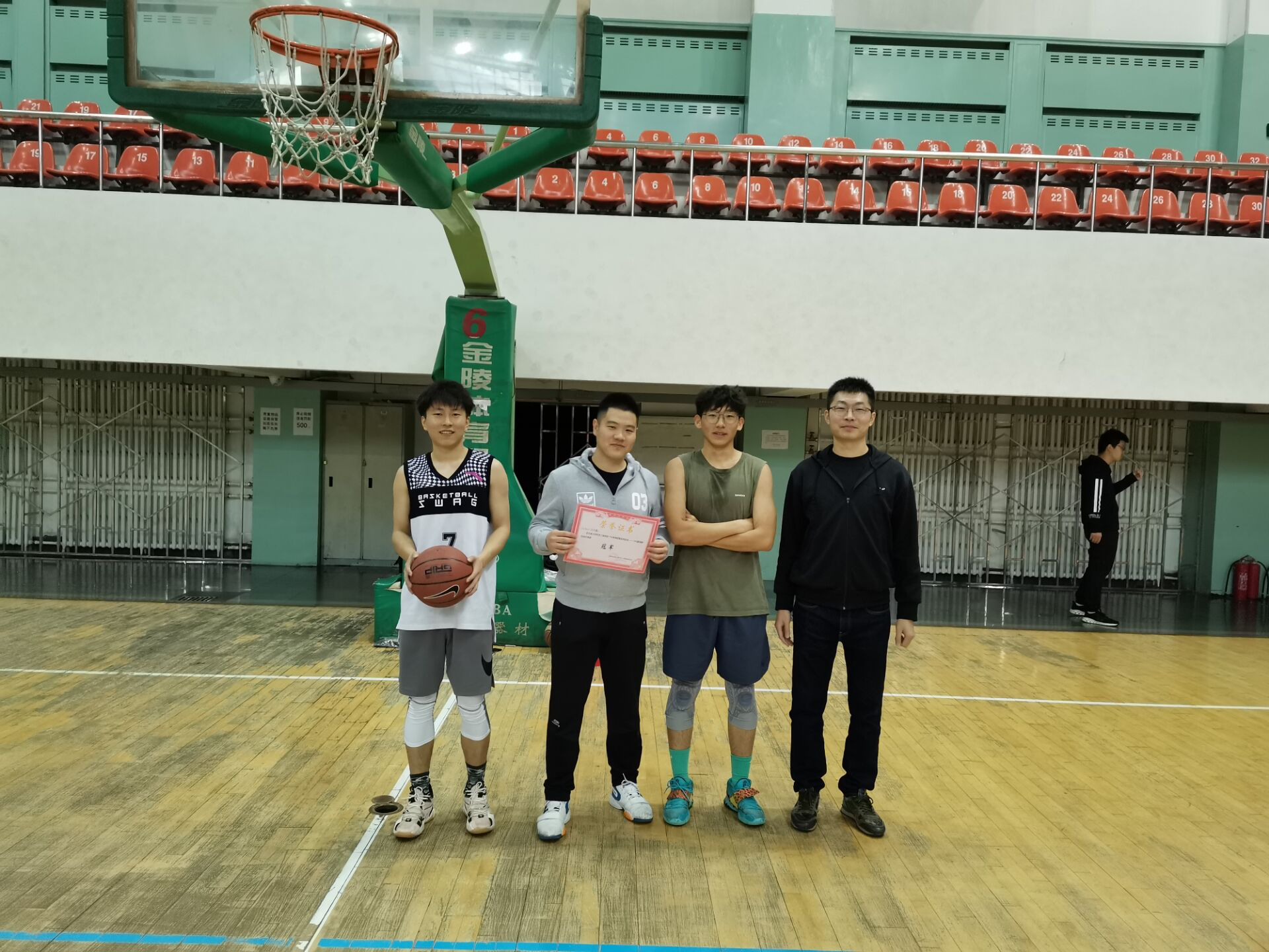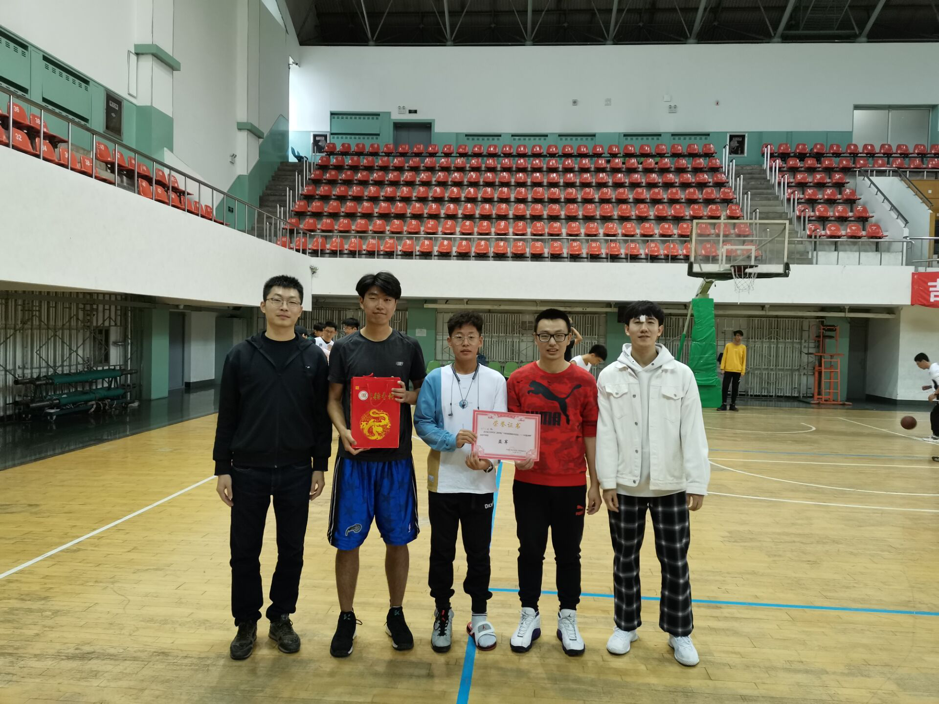 经过三天的激烈角逐,老王论坛 “球团圆”系列篮球赛终于迎来了最终的决战。2020年10月5日中午12时,大家期待已久的篮球决赛决赛如期举行,老王论坛 学生工作办公室负责人李季老师亲临现场为最终的冠军颁发证书和奖品。