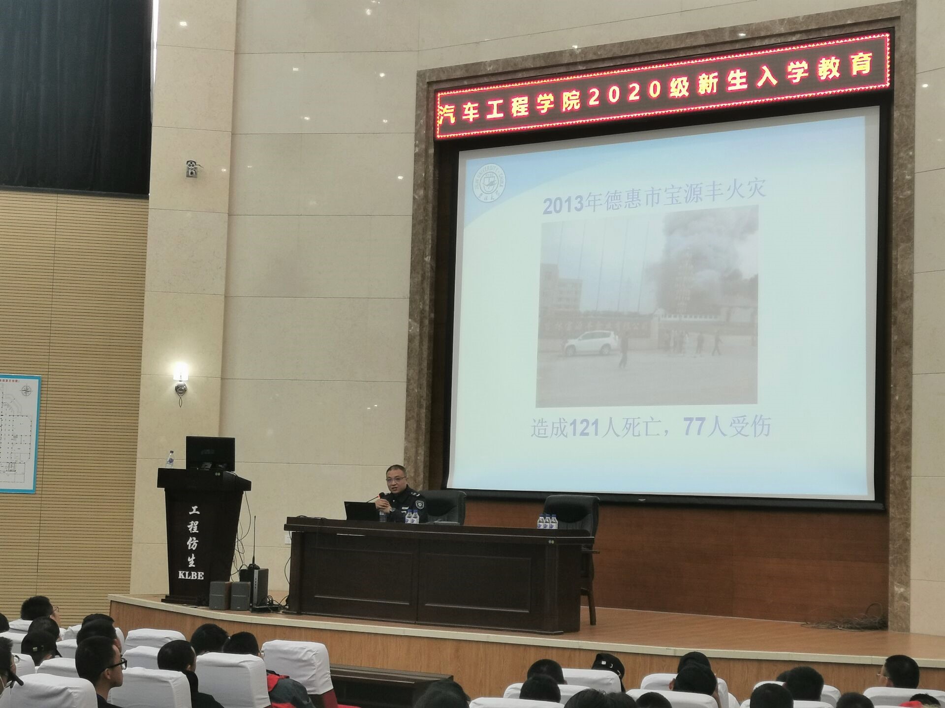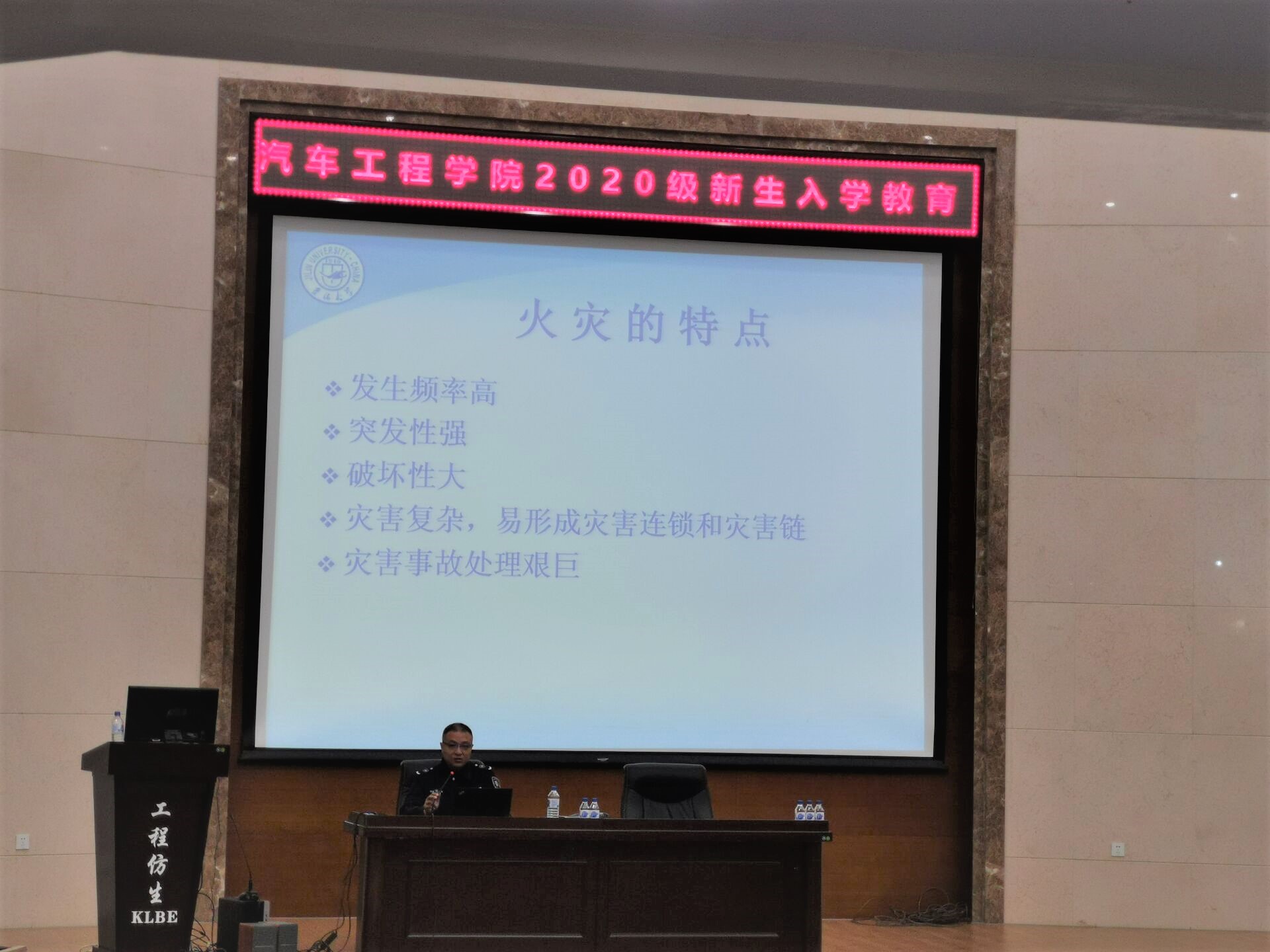 上午十点,2020级汽院新生在仿生楼报告厅就坐,安静等待聆听老师的发言。主讲人韩旭老师以防火消防为主题,结合PPT,图文并茂,并列举生活中的实例和过去的火灾新闻,告诉同学们防火意识的重要性和校园生活中应当注意的事项。讲座内容注重防火意识宣传及寝室中违禁物品的介绍,并强调禁止使用违章电器,为新同学敲响警钟,把好寝室防火第一关