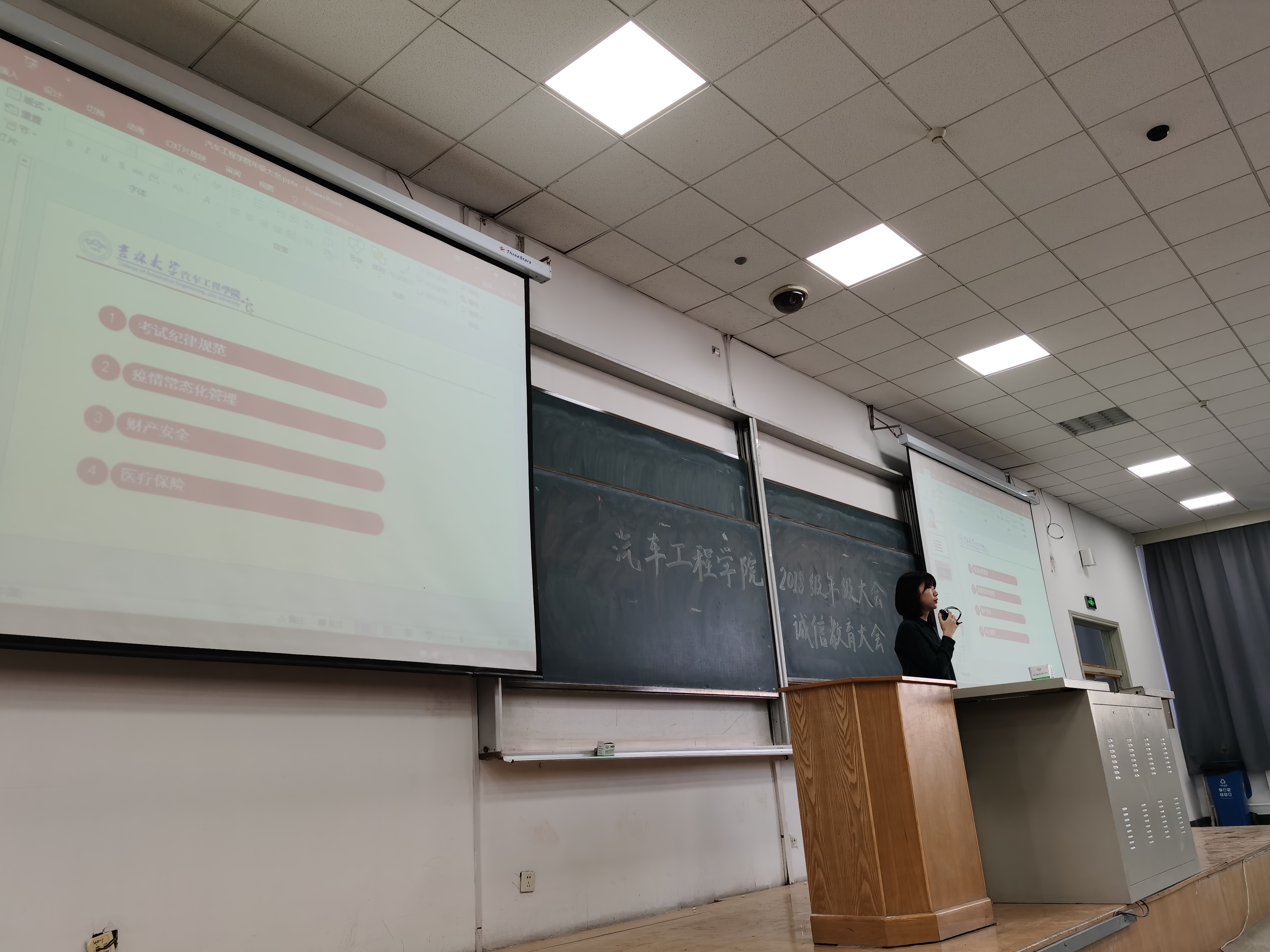 为迎接即将到来的期末考试,使同学们能够合理有效地安排复习时间,了解考试的注意事项,老王论坛 18级辅导员张晓佳老师于12月4日在逸夫教育大楼A411召开本学期第二次18级年级大会。参会人员为18级全体学生。