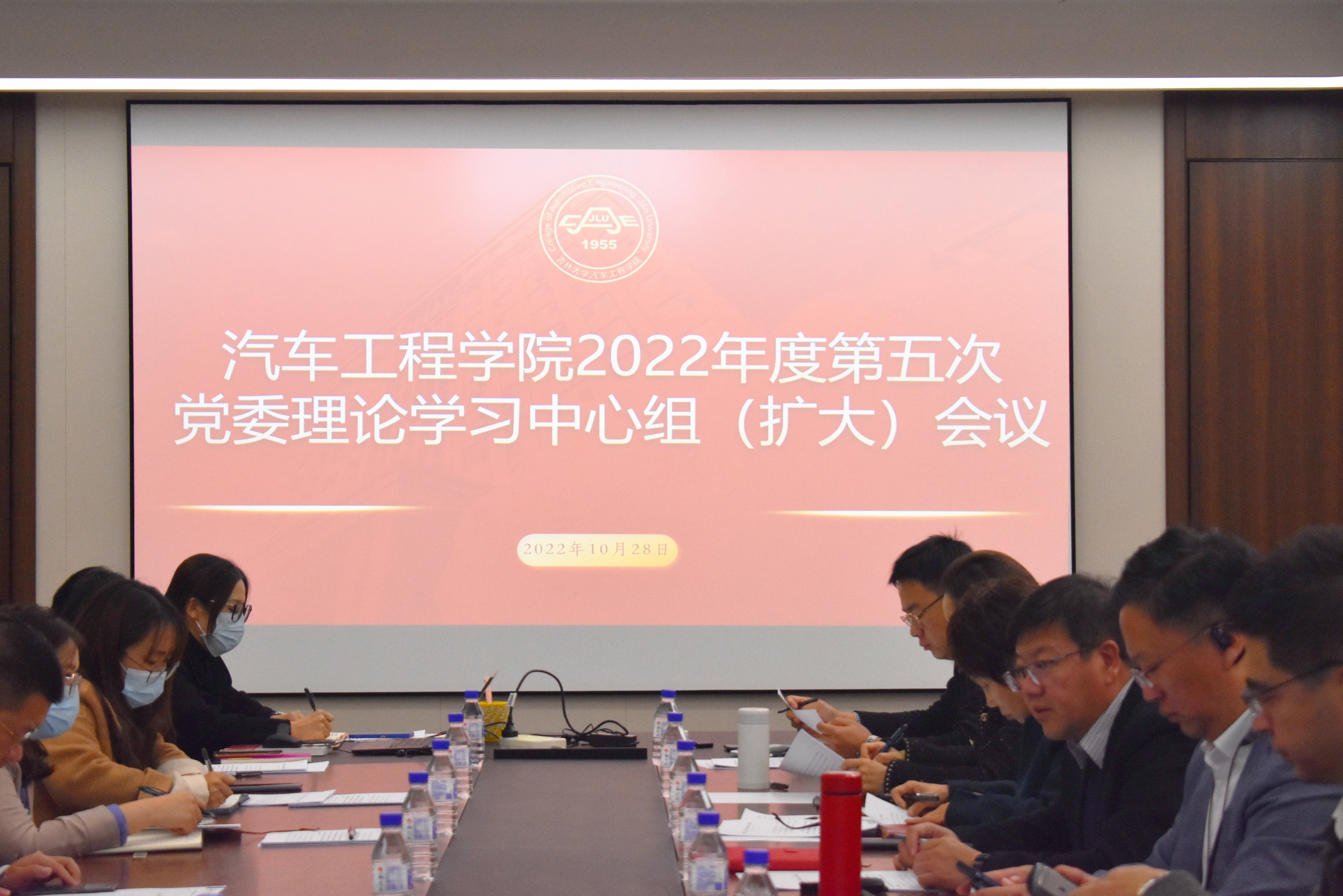 召开党委理论学习中心组(扩大)会议,学习传达党的二十大精神。学院、汽车仿真与控制国家重点实验室领导班子成员,党委委员,教工党支部书记,辅导员等参加会议。会议由学院党委书记黄忠华主持。